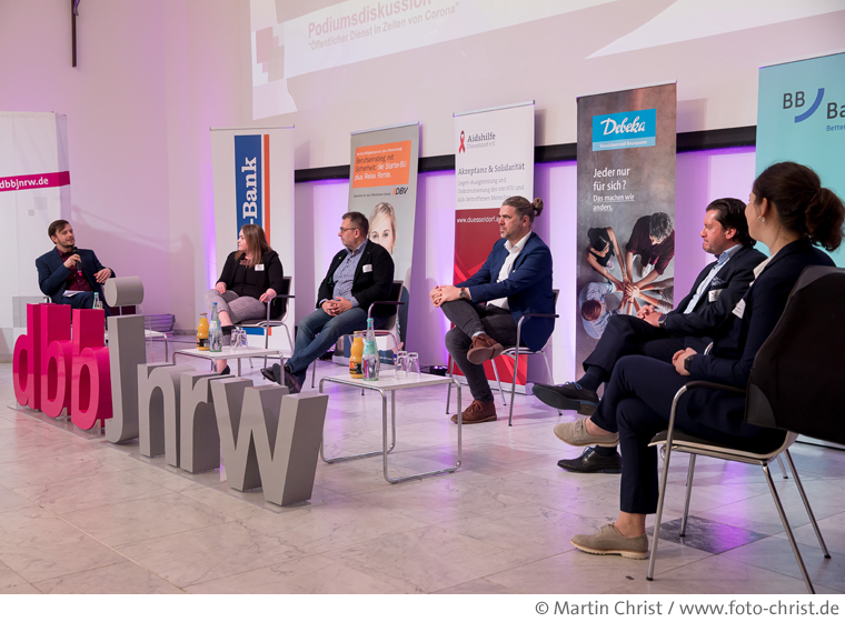 Im Plenum saßen Vertreter der Politik, wie der Parlamentarische Geschäftsführer und Sprecher für Arbeit, Gesundheit, Soziales und Kommunalpolitik der Grünen-Landtagsfraktion Mehrdad Mostofizadeh und FDP-Landtagsabgeordneter Ralf Witzel (der digital ein kurzes Vorabstatement abgab), Gesundheitsexperte Sven Steffes-Holländer, Chefarzt der Heiligenfeld-Klinik in Berlin, sowie Martin Bornträger, der als Präsident der Hochschule für Polizei und öffentliche Verwaltung den Blick auf die Situation bei den Studierenden richtete. Den Input aus der Praxis brachten Susanne Aumann als Vertreterin eines Ordnungsamtes sowie Judith Butschkau und Teresa Jedinat ein. Beide sind in der Finanzverwaltung beschäftigt.