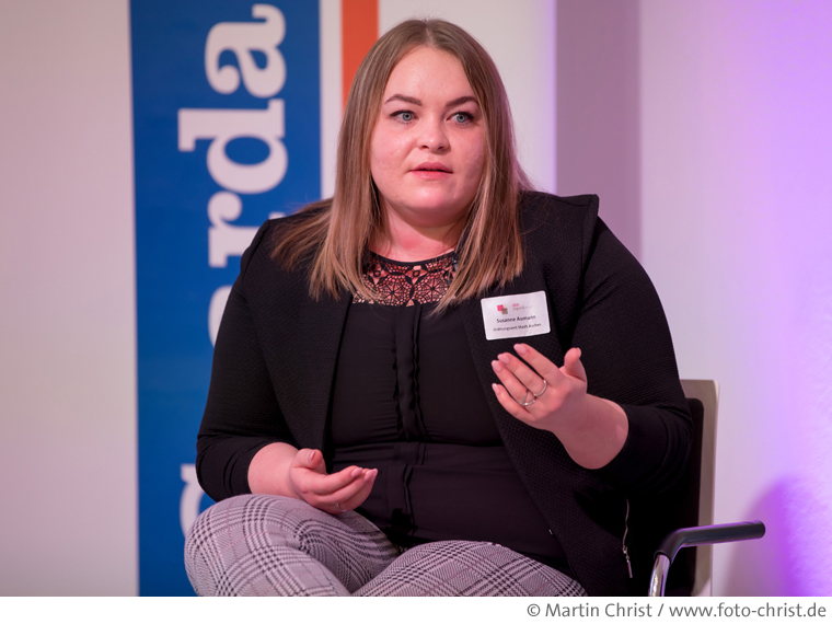 Davon, wie schwer es manchmal trotzdem sein kann, gegenüber Medien und Öffentlichkeit die Leistungen des Öffentlichen Dienstes angemessen darzustellen, berichtete Susanne Aumann, neue Vorsitzende der dbb jugend nrw und leitende Mitarbeiterin im Ordnungsamt der Stadt Aachen in der späteren Podiumsdiskussion. Der gesamte Öffentliche Dienst stehe derzeit im Fokus der Medien, vor allem dann, wenn etwas nicht so schnell laufe wie erwartet – sei es bei der Impfstrategie oder dem Aufbau von Testzentren. „Das schafft ein Bild von einem langsamen, bürokratischen Öffentlichen Dienst“, moniert Aumann. Angesichts der Tatsache, dass diese Leistung in so kurzer Zeit auf die Beine gestellt wurde – innerhalb von nur vier Wochen gingen Impf- und Testzentren an den Start – fehle ihr der positive Blick auf die Sache.